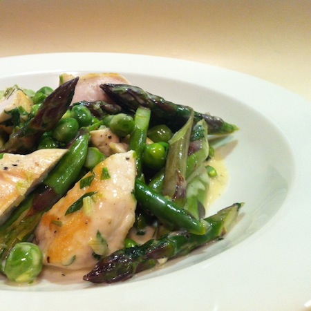 Poulet mit grünem Spargel und Erbsen an Estragonrahm