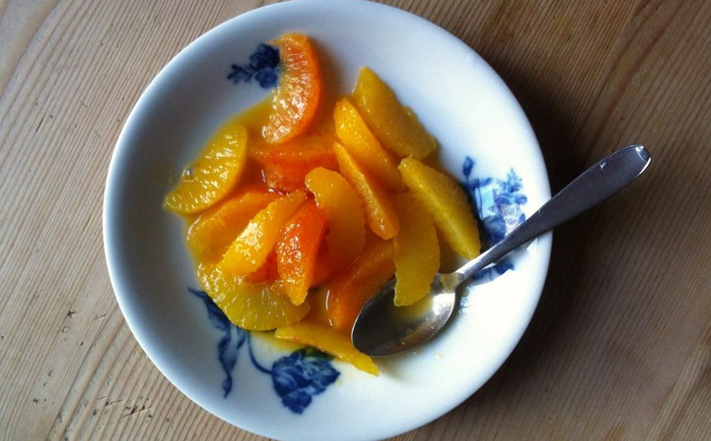 3 Orangen filetieren, dabei den Saft in einer Schüssel auffangen. In einer Pfanne 90 g Zucker caramelisieren. Caramel mit den Orangenfilets und dem aufgefangenen Saft auflösen. Mischung köcheln lassen und auf 1,5 dl reduzieren, pürieren und durch ein feines Sieb passieren. Erkalten lassen. Aus 2 Passionsfrüchten Kerne samt Saft auslösen und ebenfalls durch ein feines Sieb passieren (ergibt etwa 0,5 dl Saft). Orangensauce mit dem Passionsfruchtsaft verlängern. Pro Person 1,5 – 2 Orangen filetieren. Orangenfilets auf Tellern anrichten und mit der Orangen-Passionsfruchtsauce beträufeln. Quelle: Elfie Casty Geliebte Küche