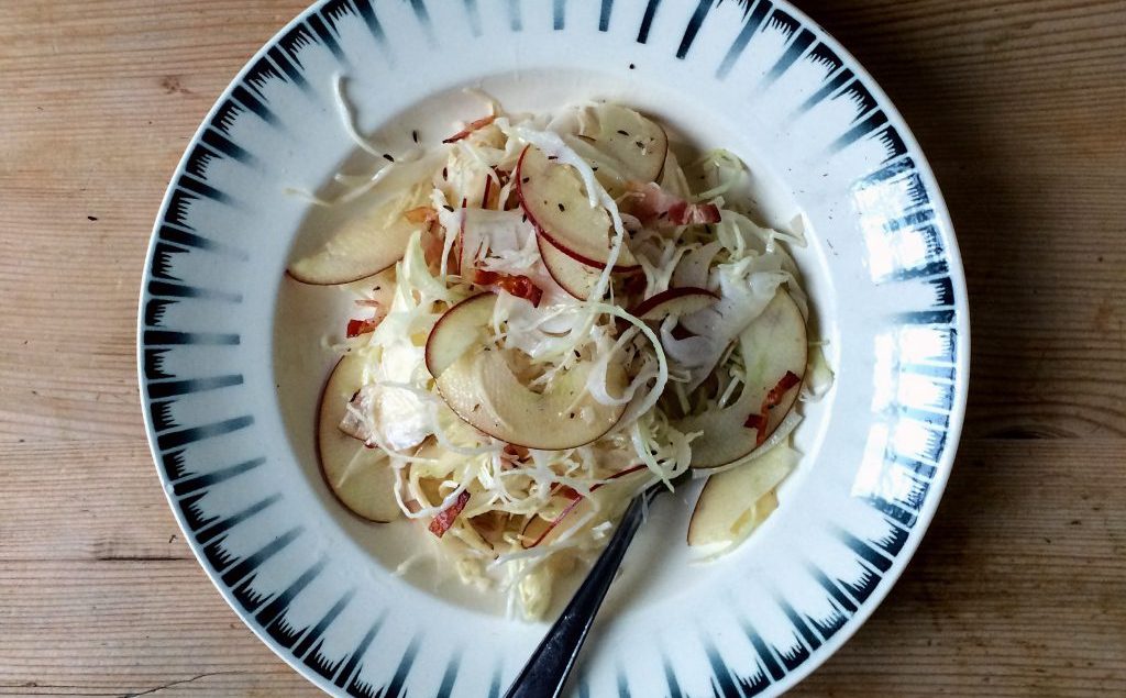 Chabissalat mit Äpfeln, Speck und Kümmel
