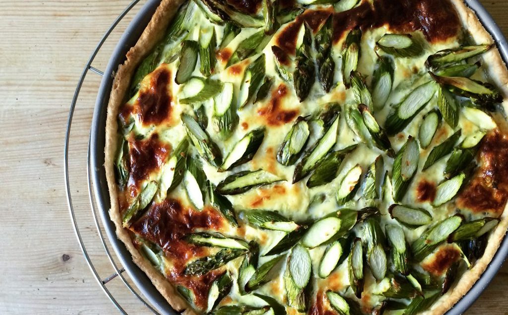 Nach demselben Rezept gelingt eine würzige Rüebliquiche. Dazu Spargeln durch Rüebli ersetzen. Statt Vacherin Greyerzer raffeln und die Quarkmasse mit einer Messerspitze Safran abschmecken.