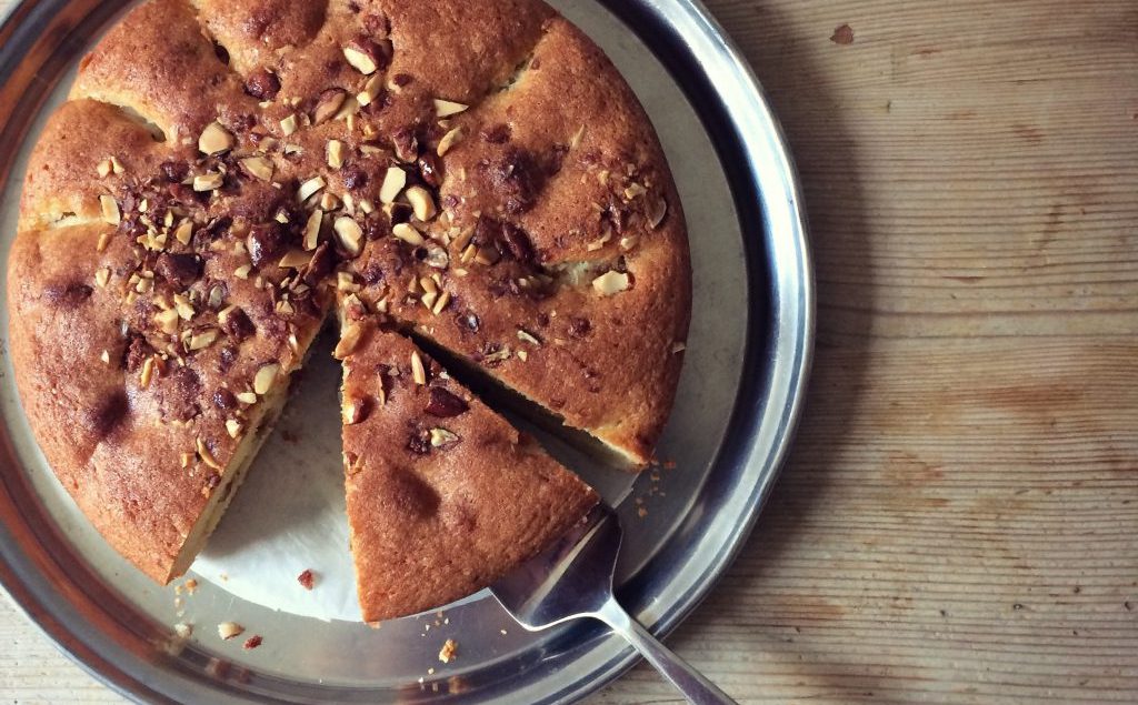 Supplement: Am besten schmecken für diesen Kuchen säuerliche Apfelsorten. Gravensteiner gibt es bereits ab August, Boskoop sind demnächst ebenfalls erhältlich. Gebrannte Mandeln werden auf Waren- und Jahrmärkten meist neben Magenbrot und Nidletäfeli angeboten. Sie können auch selber gemacht werden: Dazu 100 g Mandeln, 100 g Zucker und 0,5 dl Wasser in eine weite Pfanne geben und ohne Rühren aufkochen. Bei mittlerer Hitze ca. 10 Min. köcheln lassen bis der Zucker trocken wird. Weiter rühren bis der Zucker wieder leicht zu schmelzen beginnt und sich um die Mandeln legt. Mandeln auf ein mit Backpapier belegtes Blech verteilen und auskühlen lassen. Meist werden die gebrannten Mandeln mit Vanillezucker und Zimt abgeschmeckt, gemahlene Tonkabohne oder Zimtblüte sind eine aparte Variante. Für eine pikante Spielart Piment d’Espelette oder Lapsang Souchong ausprobieren.