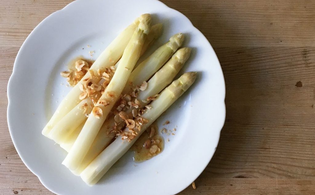Spargel mit brauner Butter und gerösteten Haselnüssen