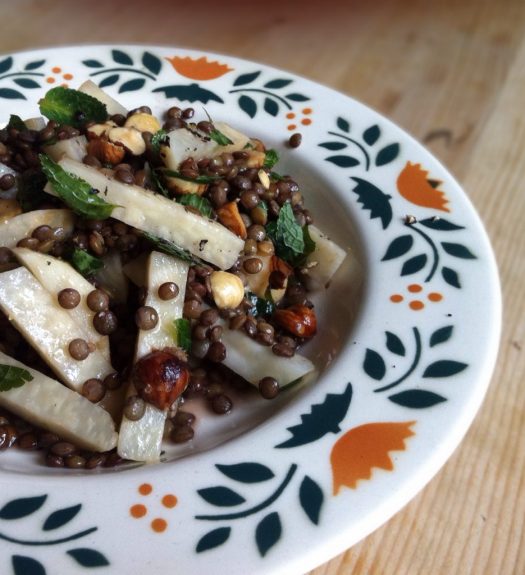18/01/201411/09/2018 von Einfach Essen In Herbst, Salat, Vegan Lauwarmer Linsen-Selleriesalat an Haselnuss-Minzevinaigrette